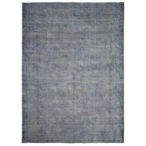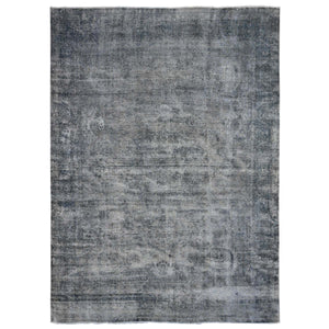 9'6"x12'5" Dim Gray, Worn Out And Distressed, Overdyed, Hand Knotted Vintage Persian Kerman, Pure And Soft Wool, Ends Secured And Cleaned, Broken Design, Oriental Rug FWR536886