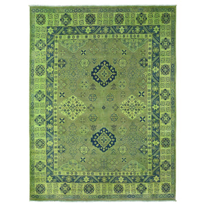 8'x9'8" Pear Green, Overdyed Kazak With All Over Geometric Design, Hand Knotted, 100% Wool, Oriental Rug FWR121476