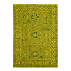 8'6"x11'4" Golden Yellow, Overdyed Kazak With Geometric Design, Hand Knotted, 100% Wool, Oriental Rug FWR121488