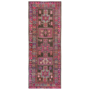 4'3"x11'5" Chocolate Brown With Batches Of Pink, Bohemian Vintage Northwest Persian, Abrash, Clean, Sheared Low, Hand Knotted Pure Wool Wide Runner Oriental Rug FWR491172
