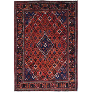 8'1"x11'3" Ochre Red, Marine Blue Corners And Border, Hand Knotted Diamond Shaped Central Medallion, Clean, Sides And Ends Professionally Secured, Pure Wool, Even Wear, Vintage Persian Joshagan, Oriental Rug FWR519690