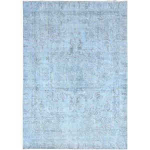 6'x8'9" Celestial Blue, Vintage Persian Tabriz, Hand Knotted Cropped Thin, Sheared Low, Evenly Worn, 100% Wool, Sides And Ends Professionally Secured And Cleaned, Oriental Distressed Rug FWR521628