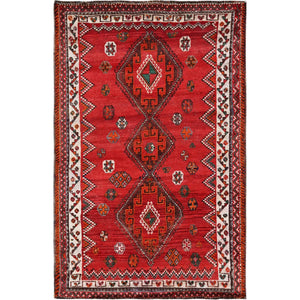 5'x7'7" Ajax Red, Vintage Persian Shiraz With Geometric Design, Shaved Down, Zero Pile, Sides And Ends Professionally Secured, Hand Knotted, Pure Wool, Oriental Rug FWR4806