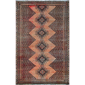 3'9"x6' Peach Color, Vintage Persian Shiraz With Intricate Paisley Design, Shaved Down, Zero Pile, Sides And Ends Professionally Secured, Clean, Hand Knotted, 100% Wool, Oriental Rug FWR5160
