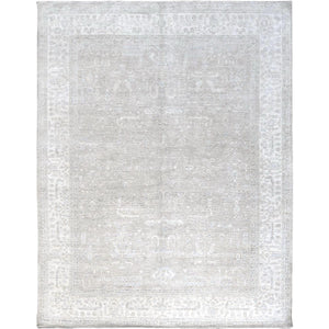 8'7"x11'5" Medium Gray, White Wash Peshawar With Heriz All Over Design, Hand Knotted, 100% Wool, Densely Woven, Oriental Rug FWR5484