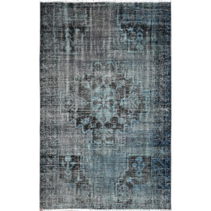 8'5"x11'4" Yale Blue, Overdyed Vintage Persian Heriz With Large Medallion, Worn And Distressed, Shaved Low, Zero Pile, Sides And Ends Professionally Secured, Hand Knotted, 100% Wool, Oriental Rug FWR7656