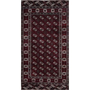 7'x13' Wine Red, Vintage Turkoman Afghan Bokara With Geometric Medallion, Shaved Low, Zero Pile, Sides And Ends Professionally Secured, Hand Knotted, 100% Wool, Gallery Size, Wide Runner, Oriental Rug FWR6138