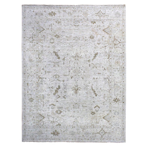 9'x12' Oyster Gray, Vintage Tabriz All Over Design, Zero Pile, Hand Knotted, Oxidized Wool, Stone Washed, Oriental Rug FWR61968
