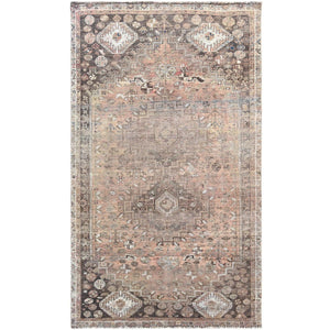 4'8"x7'10" Vintage Tan Color Persian Shiraz With Double Medallion Worn Down Clean Distressed Hand Knotted Pure Wool Oriental Rug FWR363732