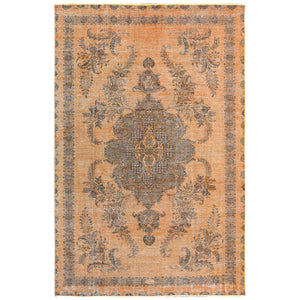 6'1"x9'6" Semi Antique Orange Cast Persian Tabriz With Open Field Design Hand Knotted Distressed Look Clean Organic Wool Oriental Rug FWR365442