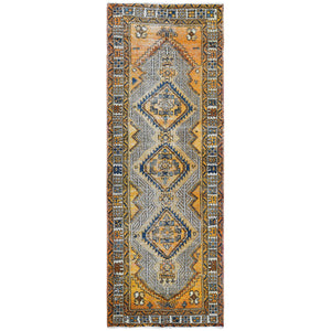 3'6"x9'8" Hand Knotted Vintage Orange And Yellow Colors Persian Serab With Serrated Medallion Design Clean Pure Wool Sheared Low Oriental Wide Runner Rug FWR366066