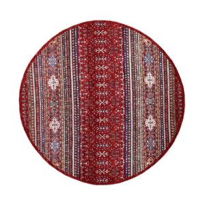 9'7"x9'7" Red Round Super Kazak Khorjin Design Natural Wool Hand Knotted Oriental Rug FWR329748