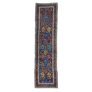 3'5"x12'9" Blue Full Pile Antique Mint Condition Northwest Persian Wide Runner Rug FWR217602
