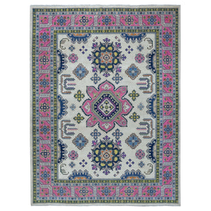 8'10"x11'6" Ivory With Pink Fusion Kazak Natural Wool Hand Knotted Oriental Rug FWR333228