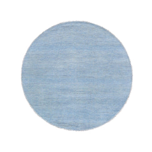 6'x6' Blue Grass Design Wool And Silk Round Hand Knotted Oriental Rug FWR355908