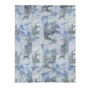 3'x5' Gray Wool And Pure Silk Mosaic Design Hand Knotted Modern Oriental Rug FWR351804