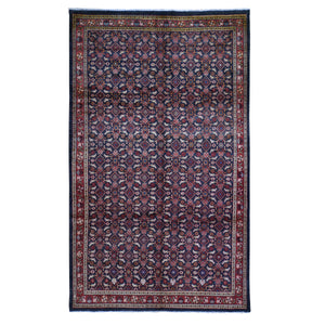 6'1"x10' Charcoal Black New Persian Mahal With Herati Fish Design All Over Hand Knotted Oriental Rug FWR358182