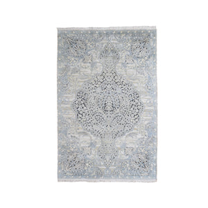 3'1"x5' The Intertwined Passage, Silk With Textured Wool Hand Knotted Oriental Rug FWR358422