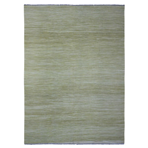 9'1"x12' Laurel Green, Solid Design, Hand Woven, Vegetable Dyes, Flat Weave, Afghan Kilim, Hand Spun Wool, Oriental Rug FWR120570