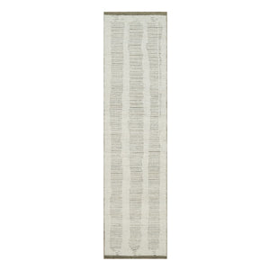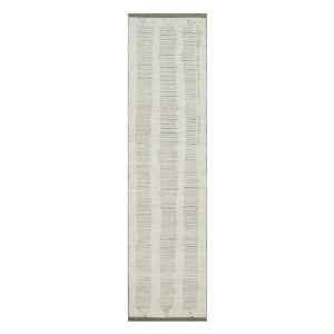 2'6"x10' Papyrus White, Hand Woven, Flat Weave With Textured Pile, Undyed Natural Wool, Runner, Oriental Rug FWR550362