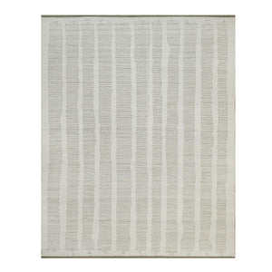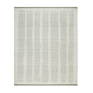 8'x10' Alabaster White, Hand Woven, Flat Weave With Textured Pile, Undyed Natural Wool, Oriental Rug FWR550374