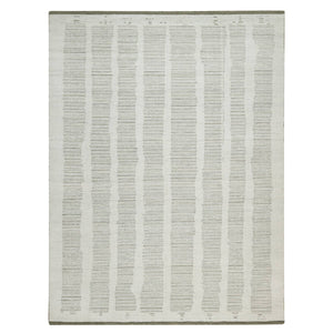 9'x12'1" Chiffon White, Flat Weave With Textured Pile, Undyed Natural Wool, Hand Woven, Oriental Rug FWR550494