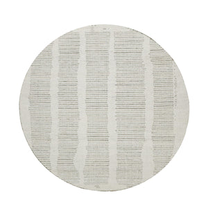5'10"x5'10" Cream White, Hand Woven, Flat Weave With Pile, Undyed Natural Wool, Textured, Round, Oriental Rug FWR550434