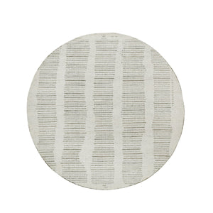 7'9"x7'9" Pearl White, Undyed Natural Wool, Hand Woven, Flat Weave With Pile, Textured, Round, Oriental Rug FWR550368