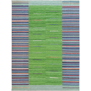 9'4"x12'1" Flat Weave Kilim Pure Wool Hand Woven Stripe Design Reversible Oriental Rug FWR360552