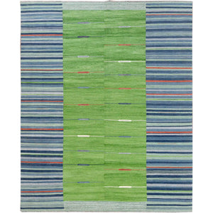 8'3"x10'1" Hand Woven Stripe Design Flat Weave Kilim Pure Wool Reversible Oriental Rug FWR360564