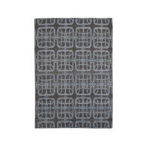 4'x5'10" Charcoal Gray Pure Wool Reversible Geometric Design Kilim Flat Weave Hand Woven Oriental Rug FWR396474