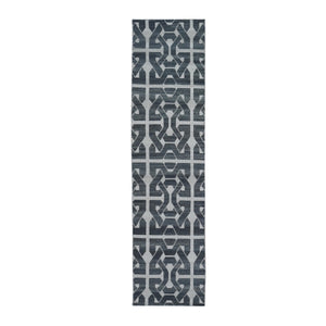 2'7"x10' Geometric Pattern Flat Weave Pure Wool Reversible Kilim Runner Gray Hand Woven Oriental Rug FWR396588