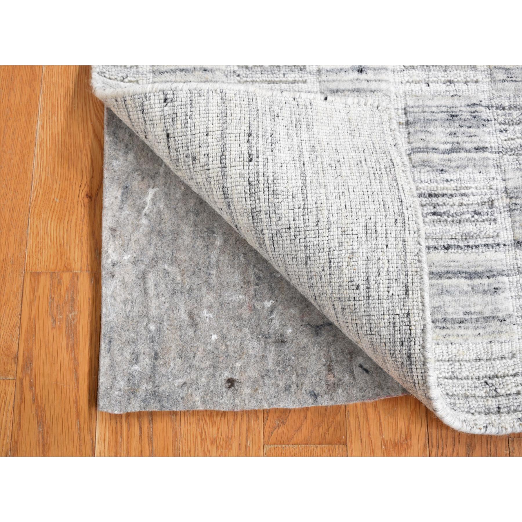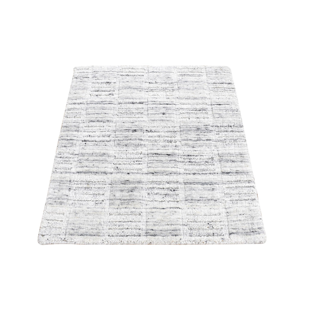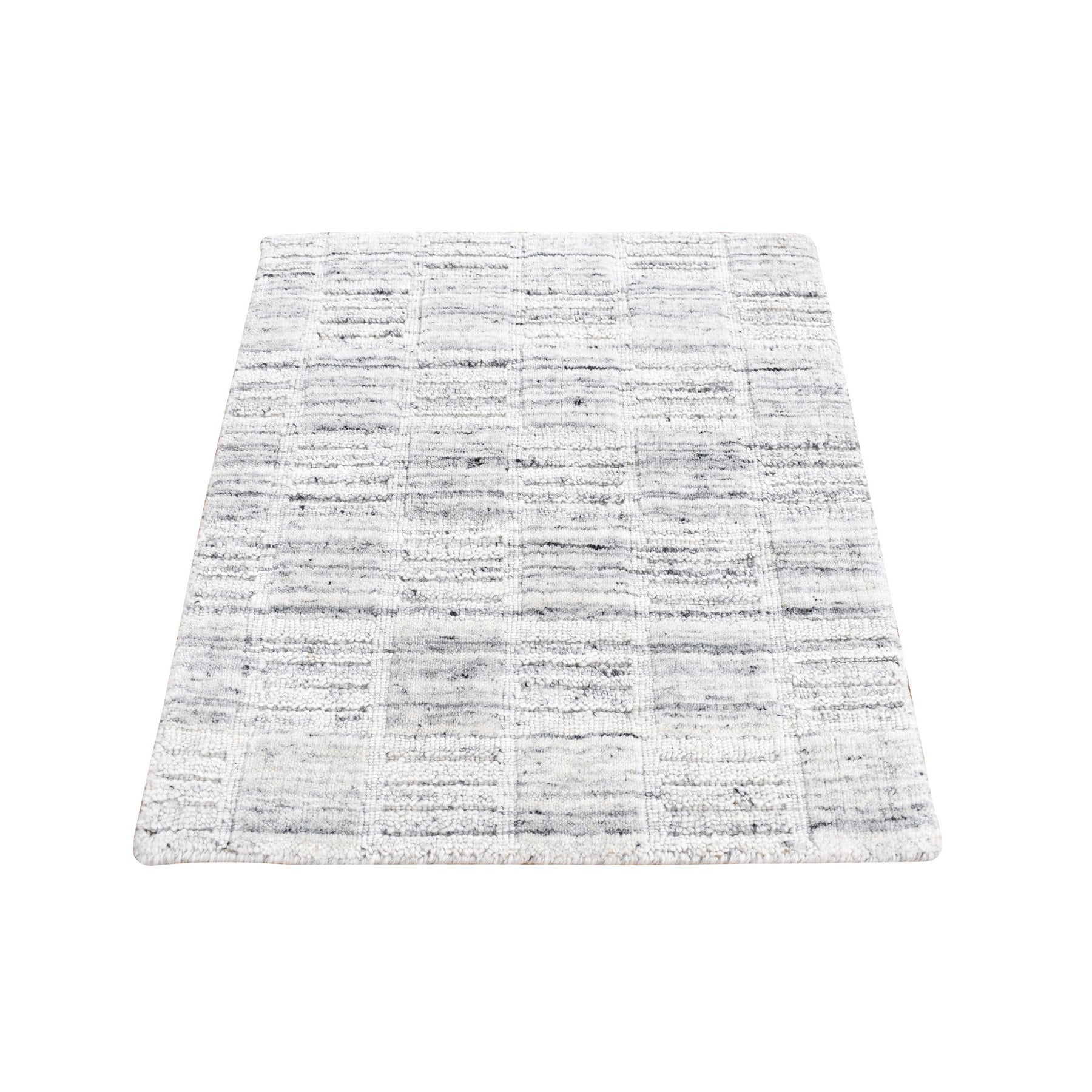 1'10"x2' Pearl White, Hand Loomed, Modern Checkers Design, Pure Wool, Sample Fragment, Squarish, Oriental Rug FWR524892