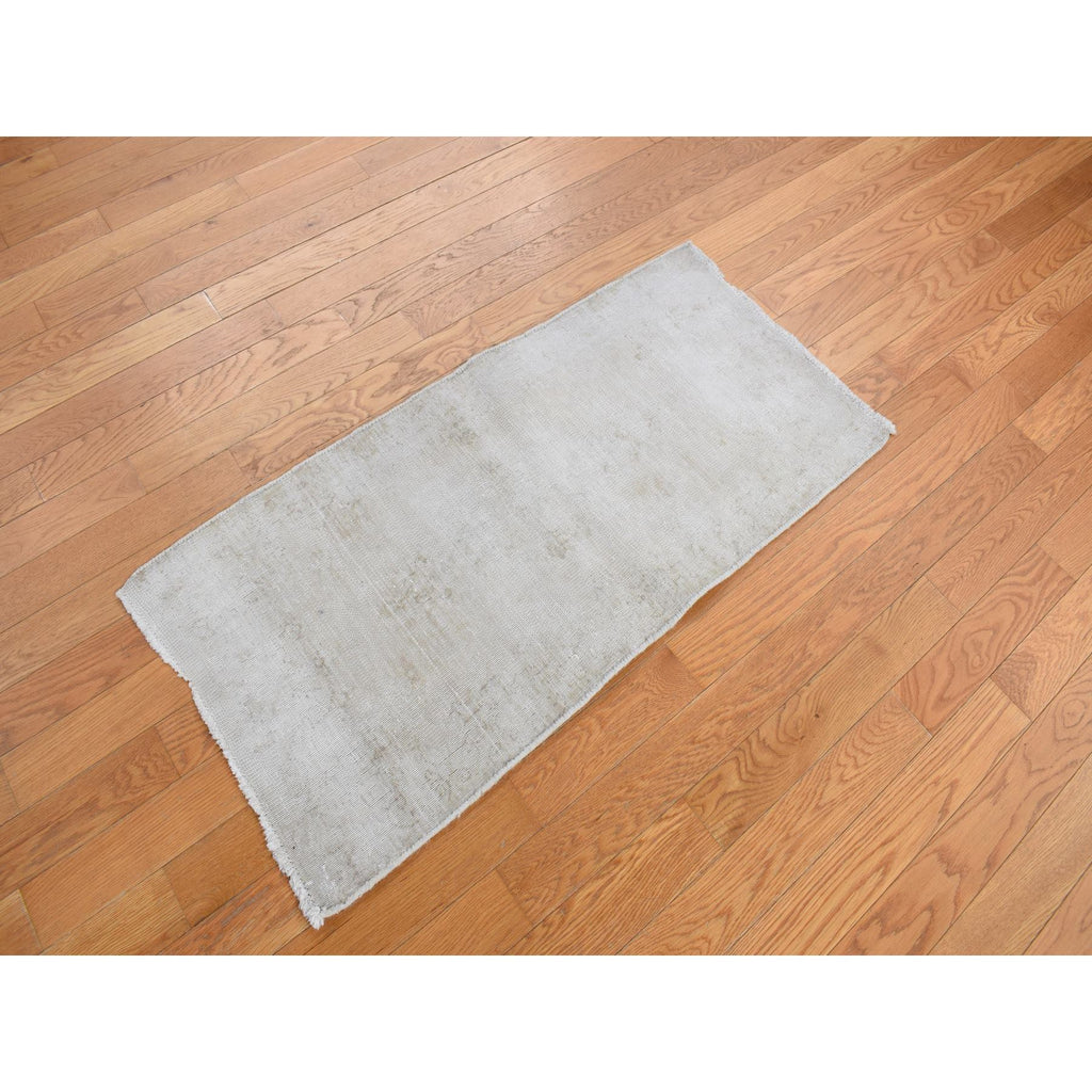 1'10"x3'10" Khaki Brown, Vintage Persian Kerman, Worn Down And Distressed, Hand Knotted, Pure Wool, Oriental Rug FWR468780
