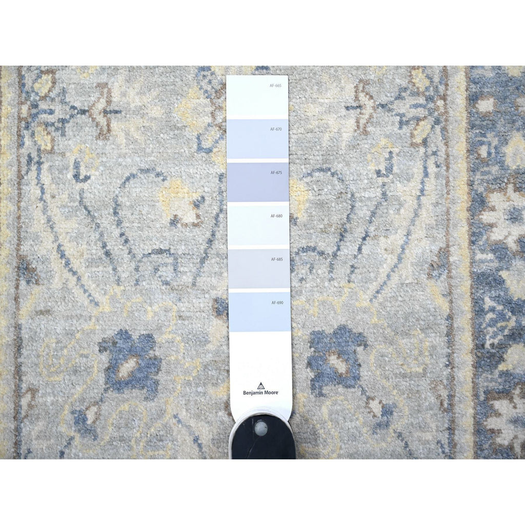 1'10"x3' Cloud Gray, White Wash Peshawar With All Over Design, Pure Wool, Hand Knotted, Natural Dyes, Mat Oriental Rug FWR530574