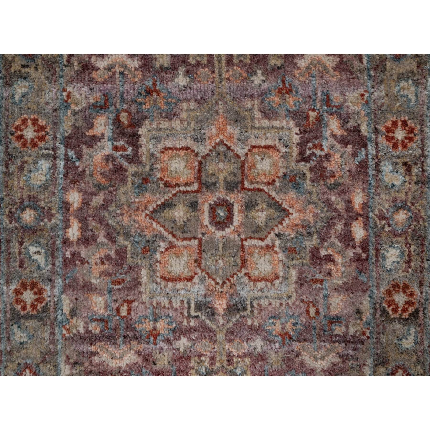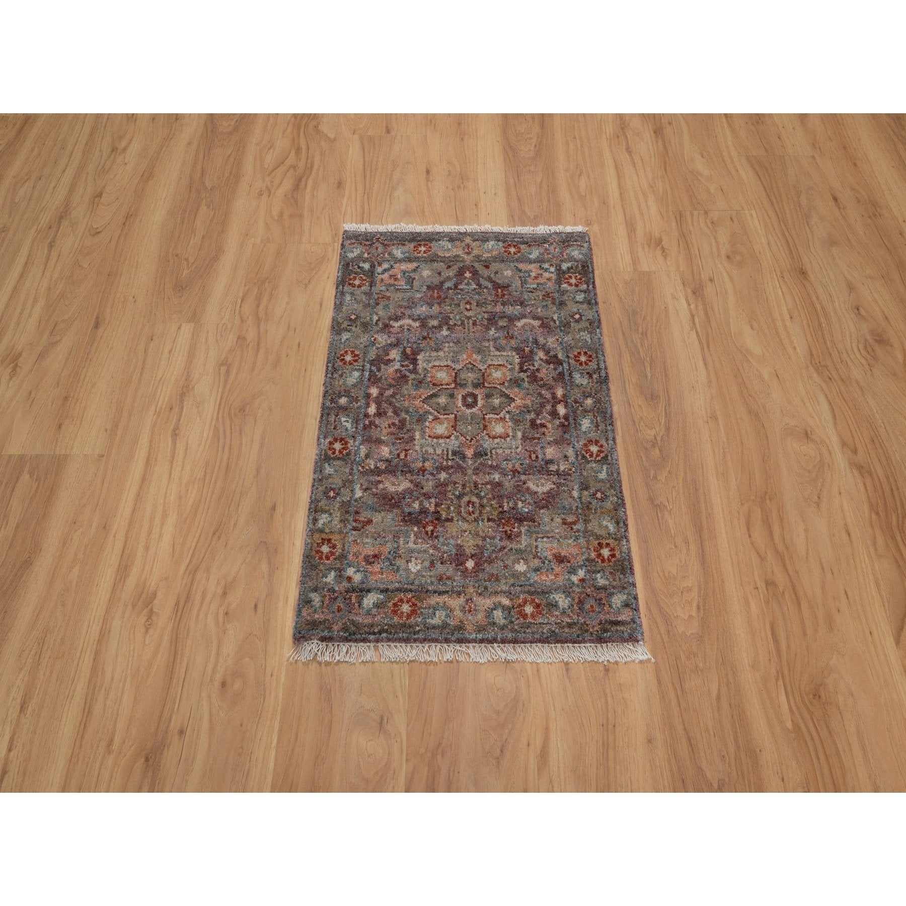 1'10"x3' Mahogany Red, Heriz Revival, Vegetable Dyes, Hand Knotted, Natural Wool, Thick And Plush, Soft Pile, Sample, Mat, Oriental Rug FWR550614
