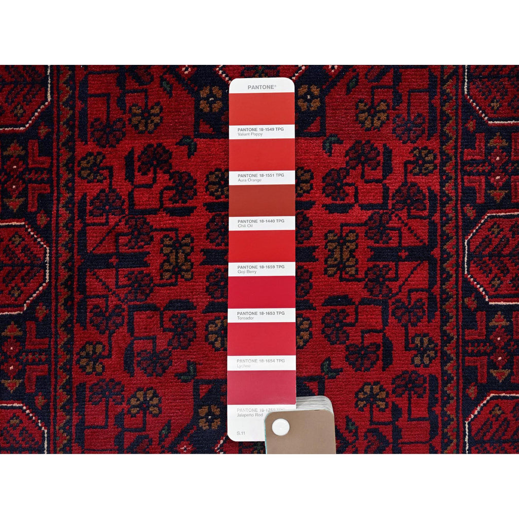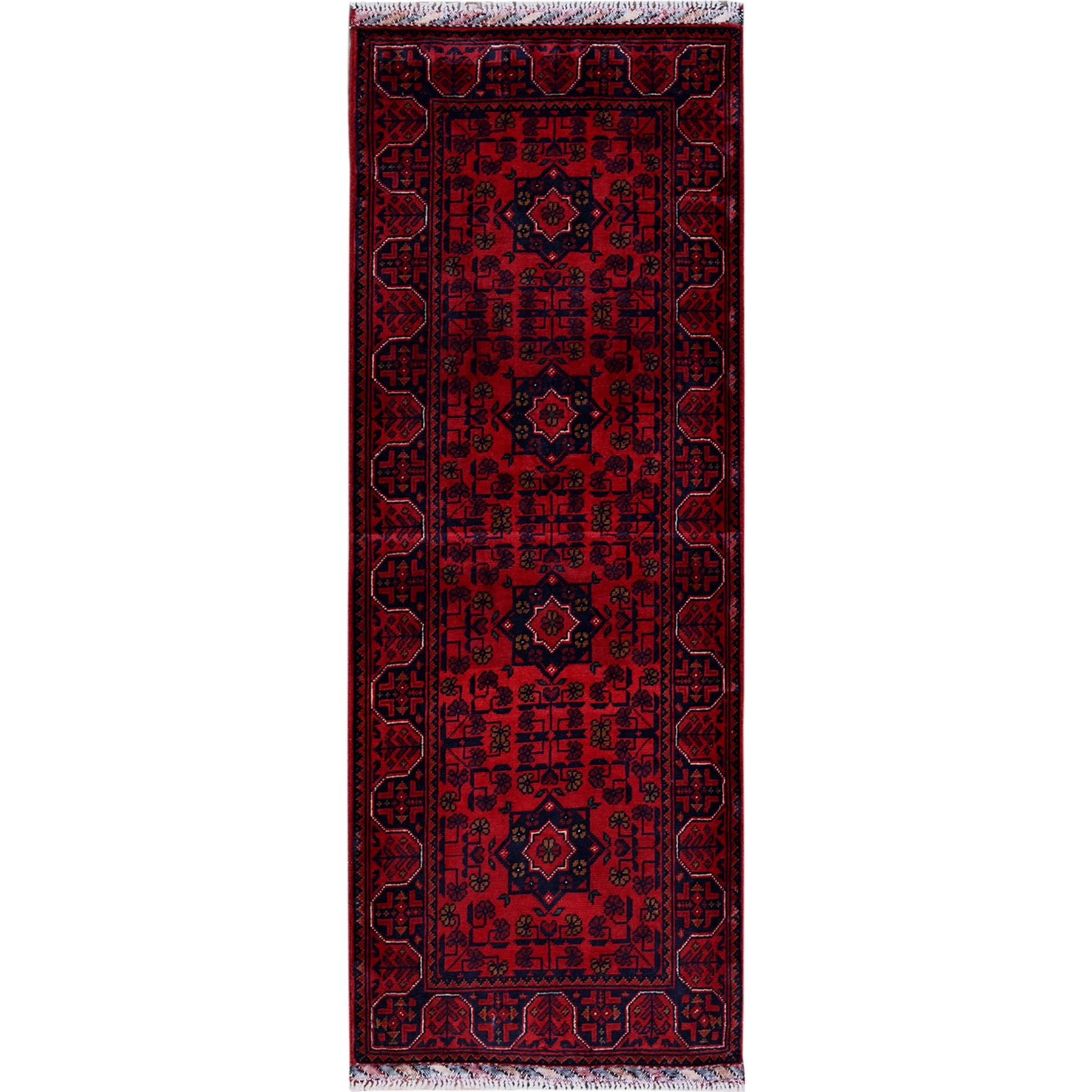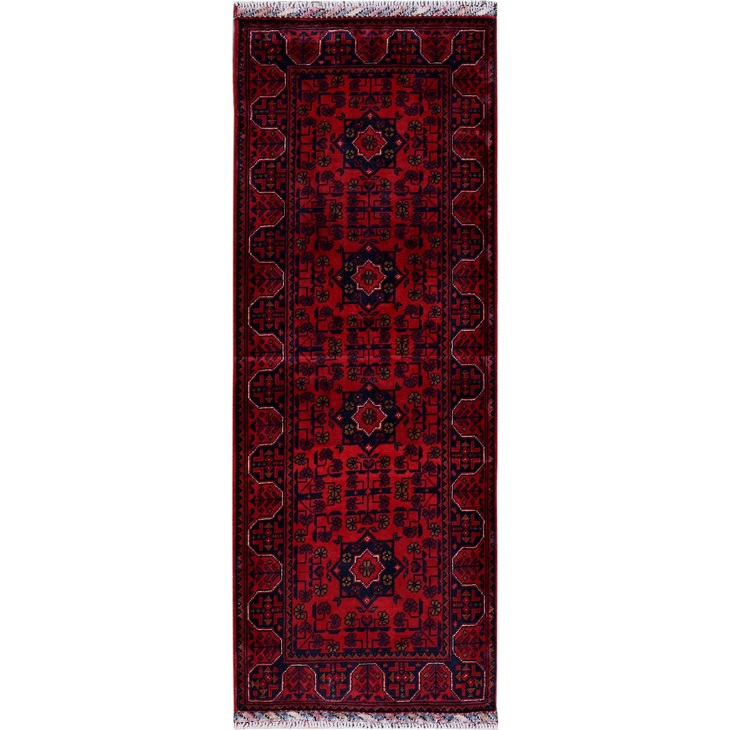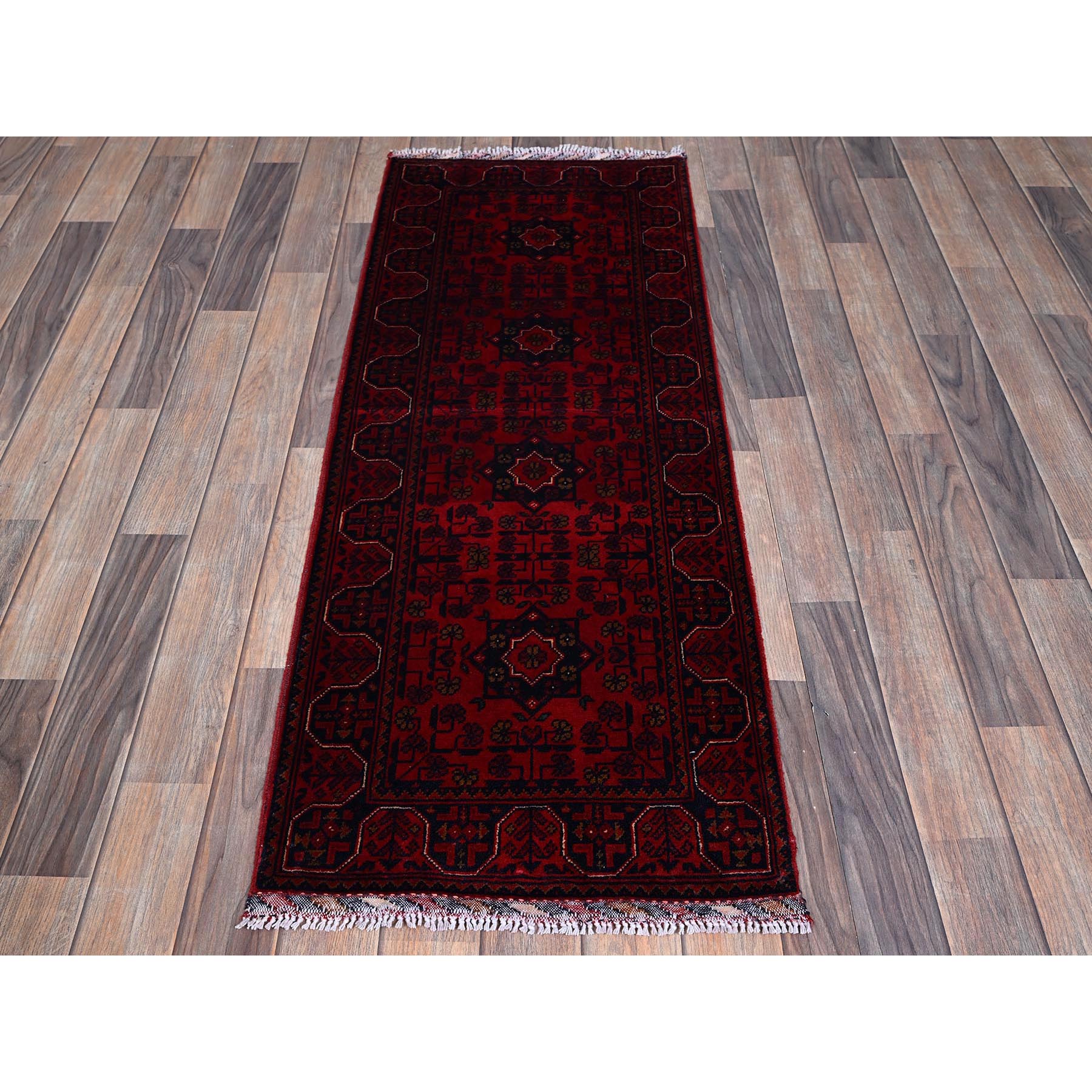 1'10"x4'10" Scarlet Red, Afghan Khamyab With Geometric Medallions Design, Soft And Shiny Wool, Hand Knotted, Vegetable Dyes, Short And Narrow Runner, Oriental Rug FWR4500