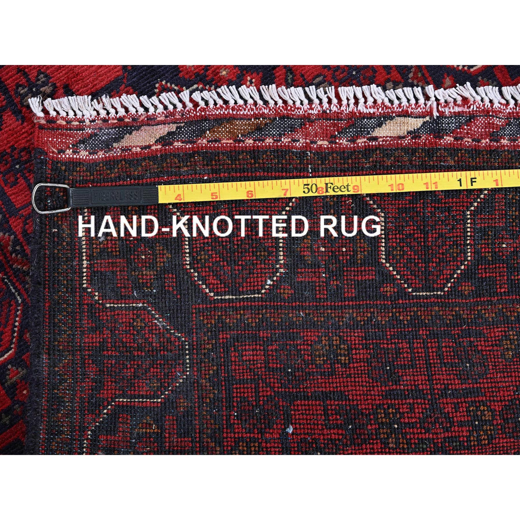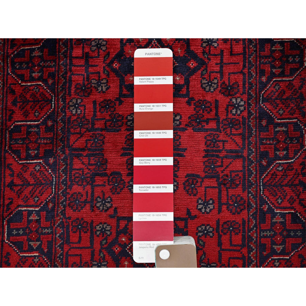 1'10"x5'1" Ruby Red, Afghan Khamyab With Tribal Medallions Design, Natural Wool, Hand Knotted, Vegetable Dyes, Short And Narrow Runner, Oriental Rug FWR4452