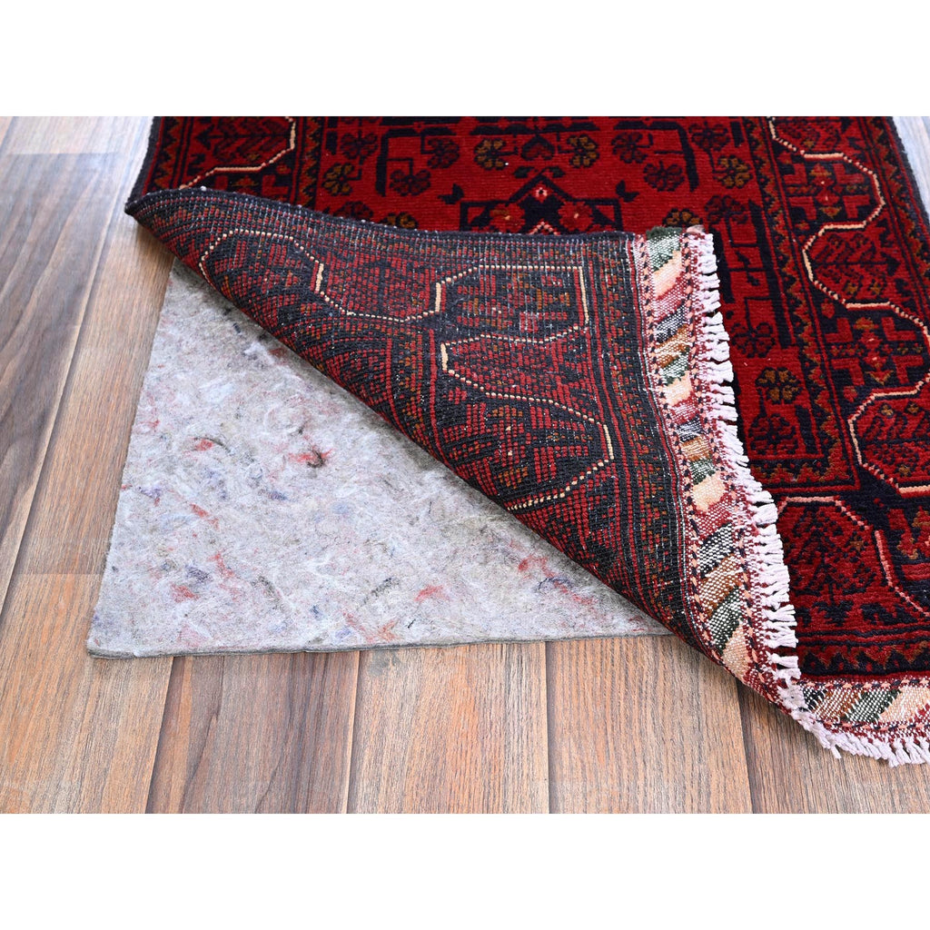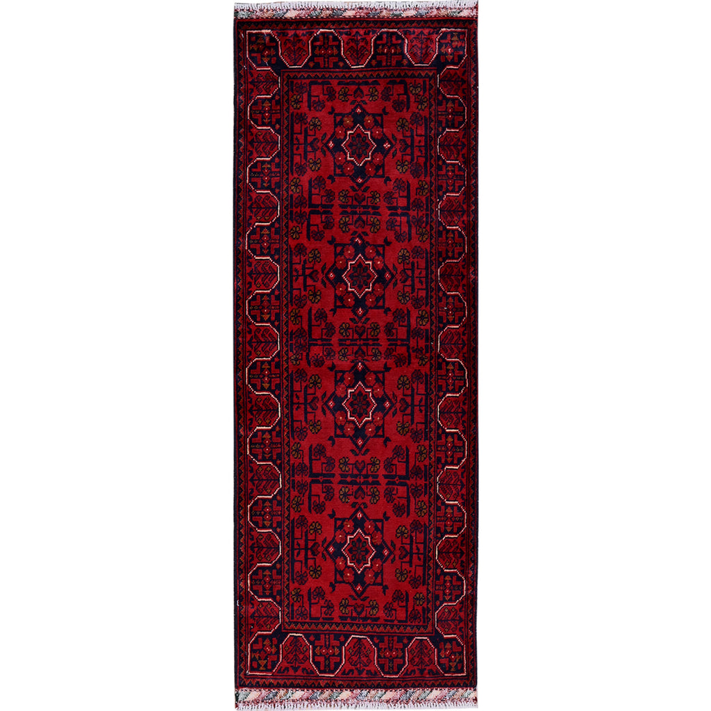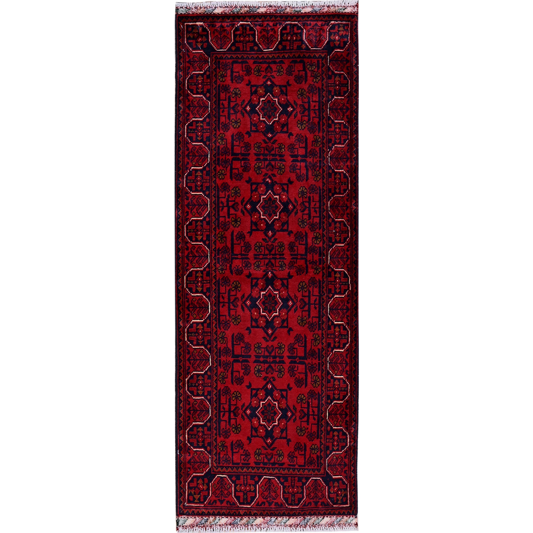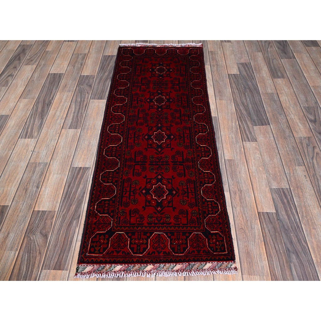 1'10"x5' Crimson Red, Afghan Khamyab With Geometric Pattern, Hand Knotted, Soft Wool, Vegetable Dyes, Short And Narrow Runner, Oriental Rug FWR4482