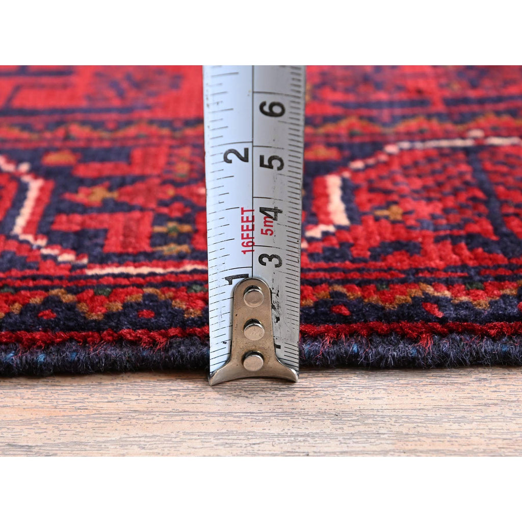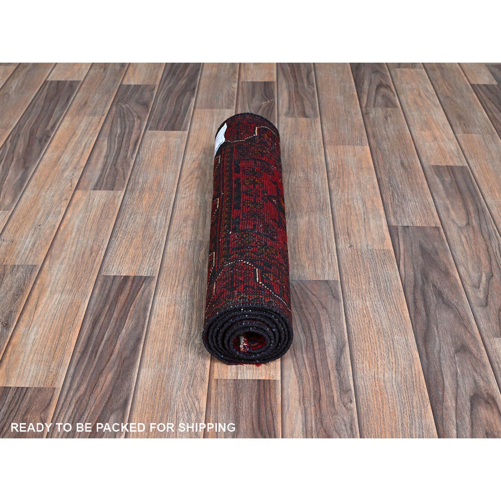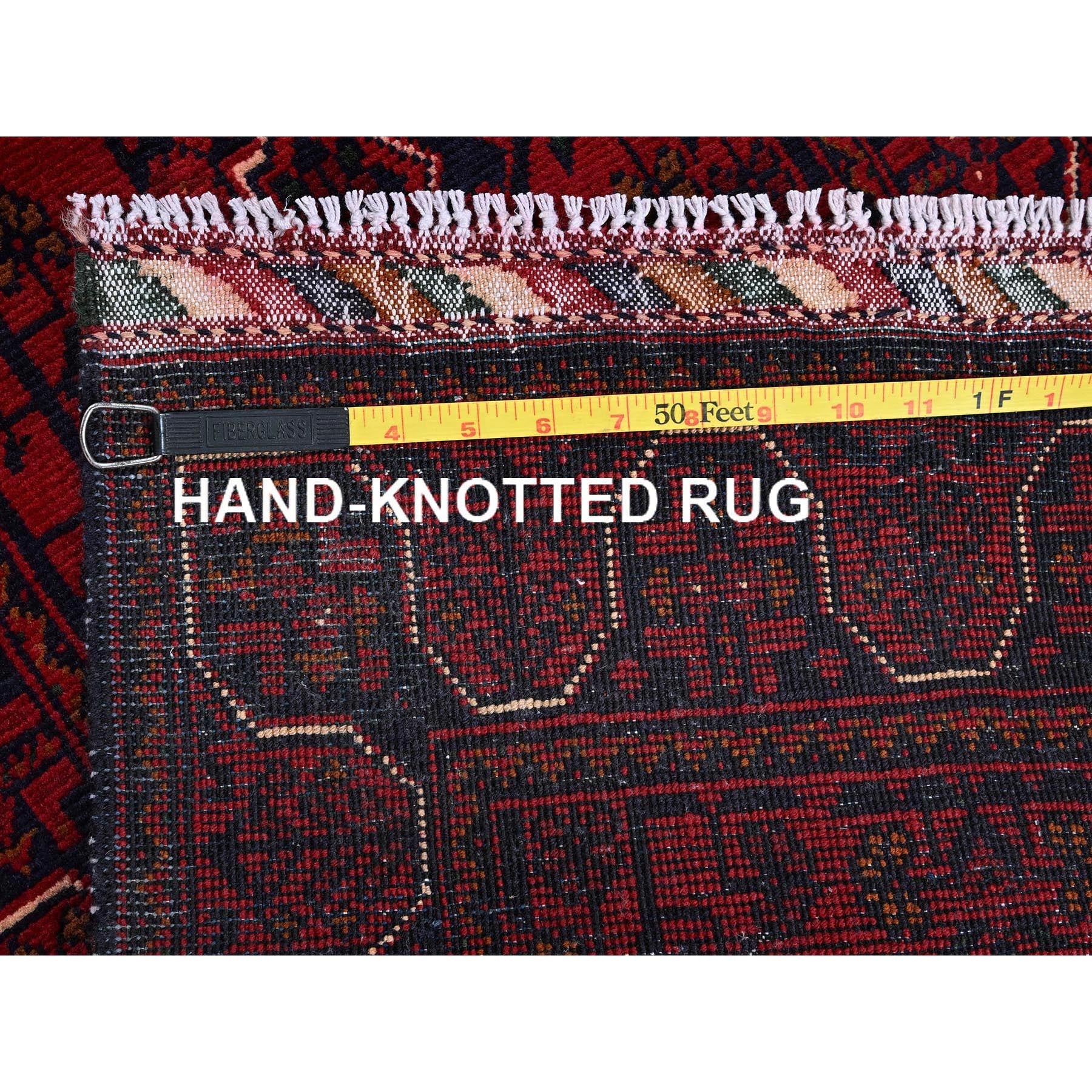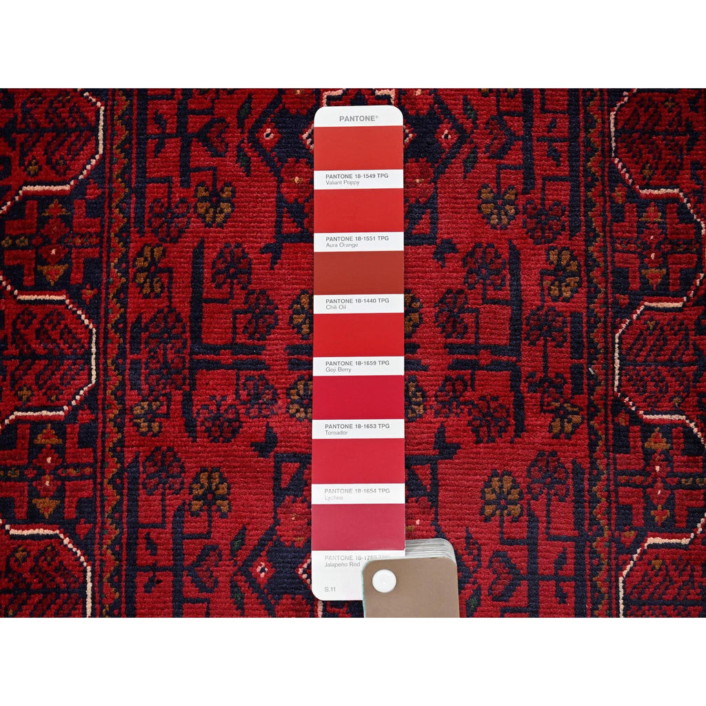 1'10"x5' Crimson Red, Afghan Khamyab With Geometric Pattern, Hand Knotted, Soft Wool, Vegetable Dyes, Short And Narrow Runner, Oriental Rug FWR4482