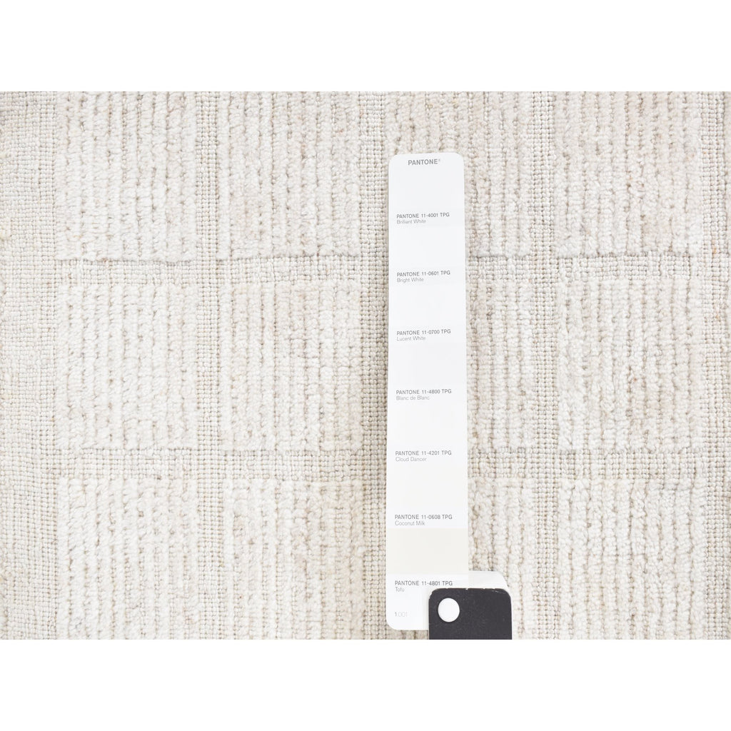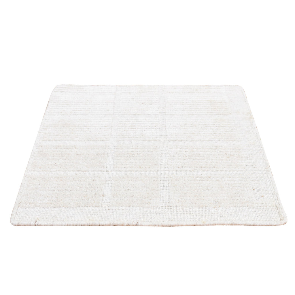 1'6"x1'6" Ivory, 100% Wool, Hand Loomed, Thick And Soft, Modern Box Design, Sample Oriental Rug FWR527670