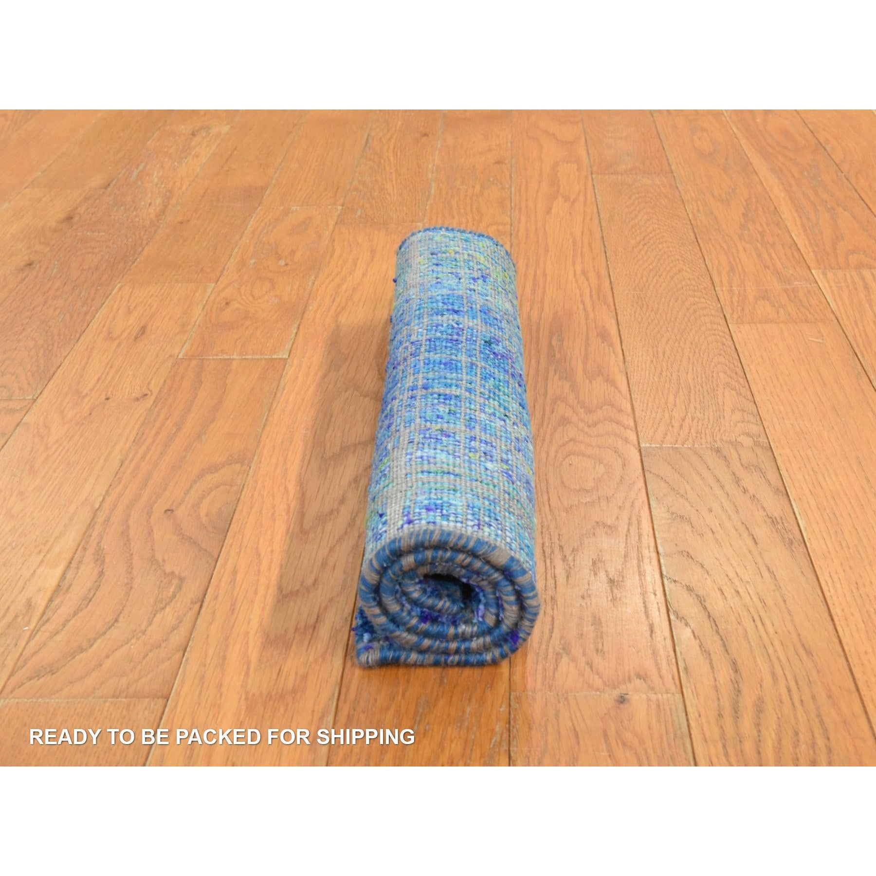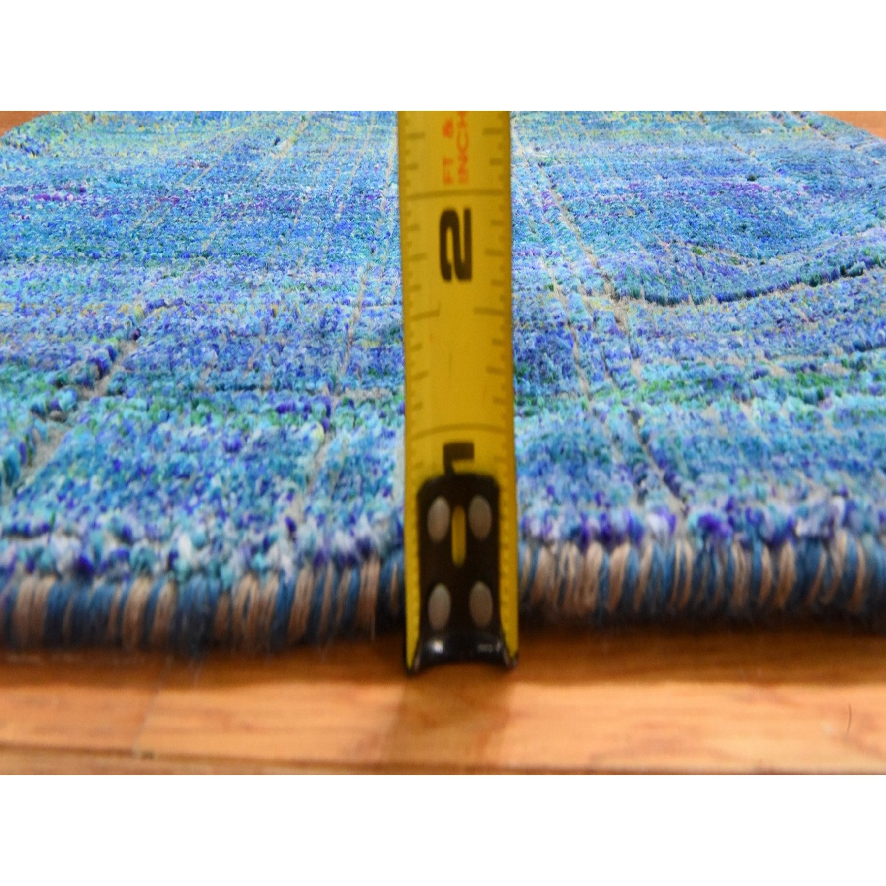 1'6"x2' Galaxy Blue, Pure Sari Silk, Sample, Strike Off, Hand Knotted, Mat, Oriental Rug FWR470664
