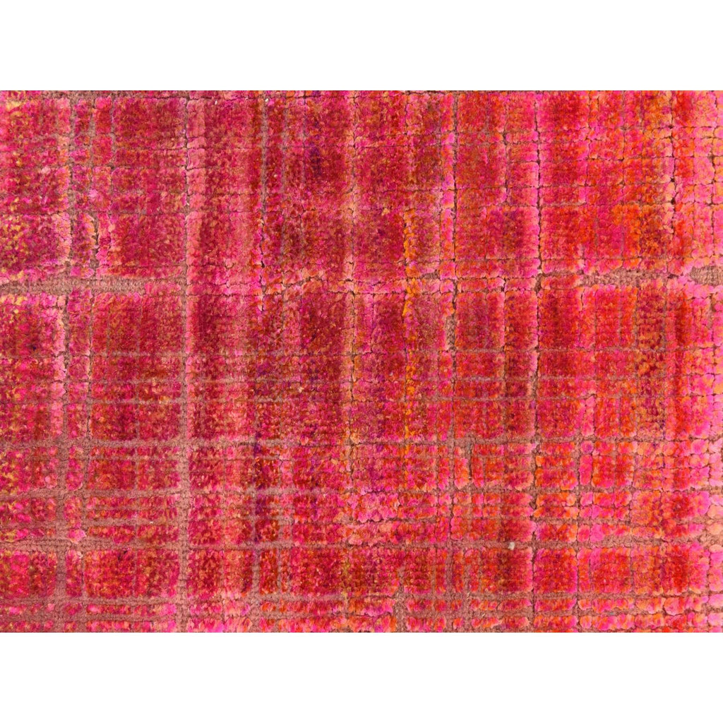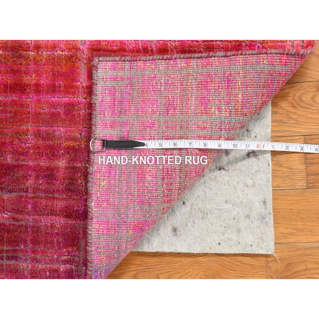 1'6"x2' Jazzy Red, Pure Sari Silk, Sample, Strike Off, Hand Knotted, Oriental Rug FWR470652