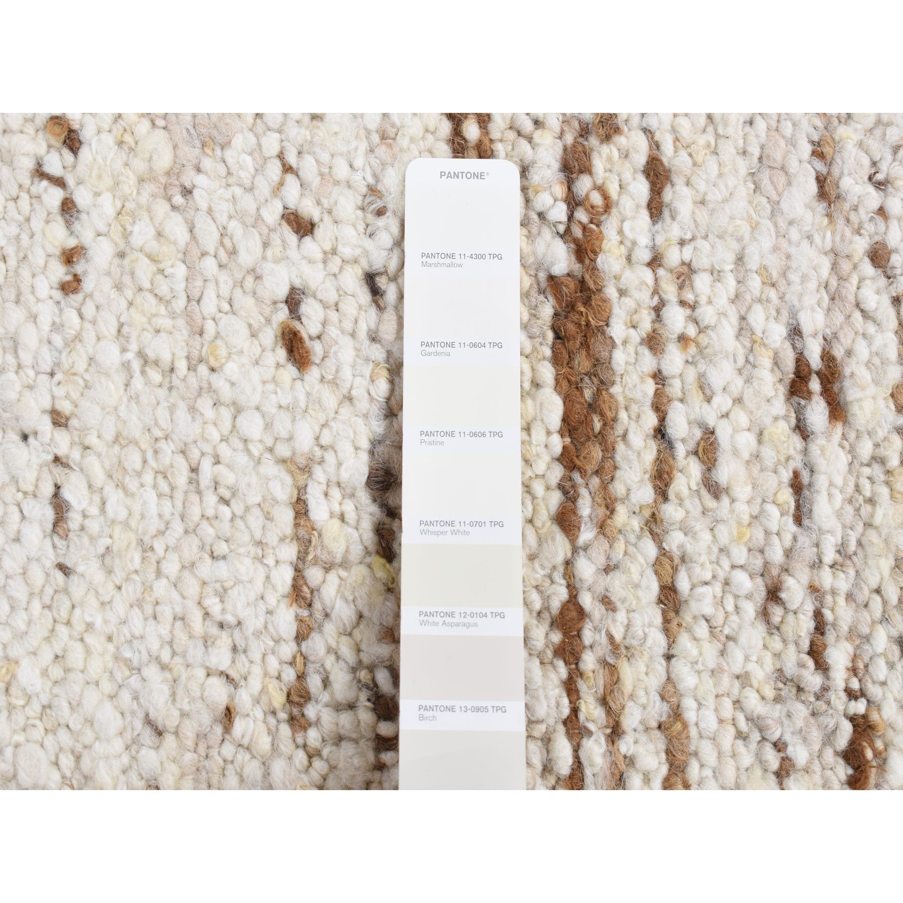 1'8"x1'8" Ivory, Modern Thick Chunky Texture, 100% Wool, Hand Knotted, Sample Fragment, Square Oriental Rug FWR524448