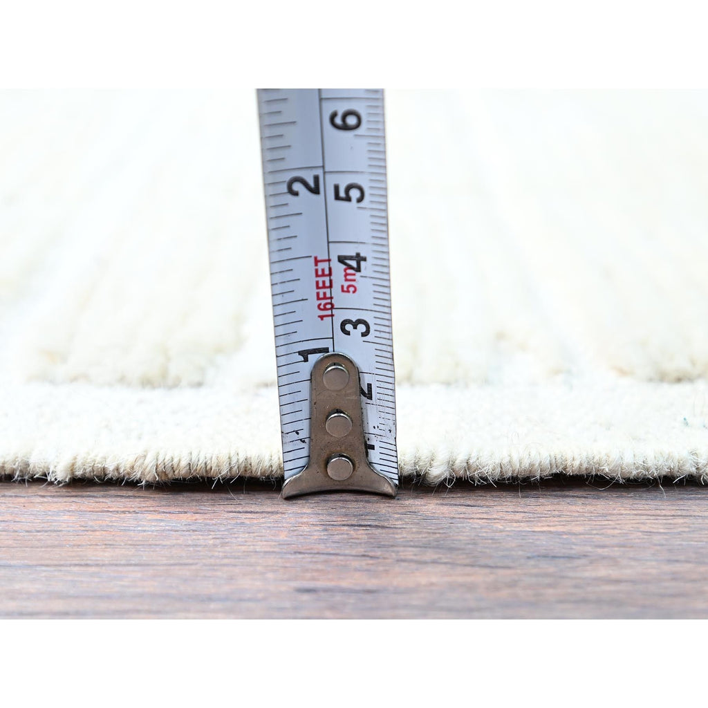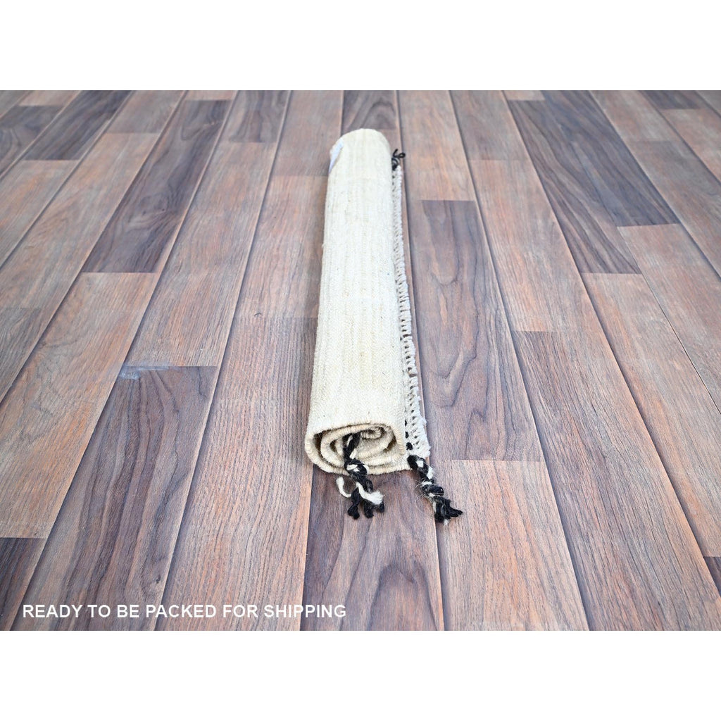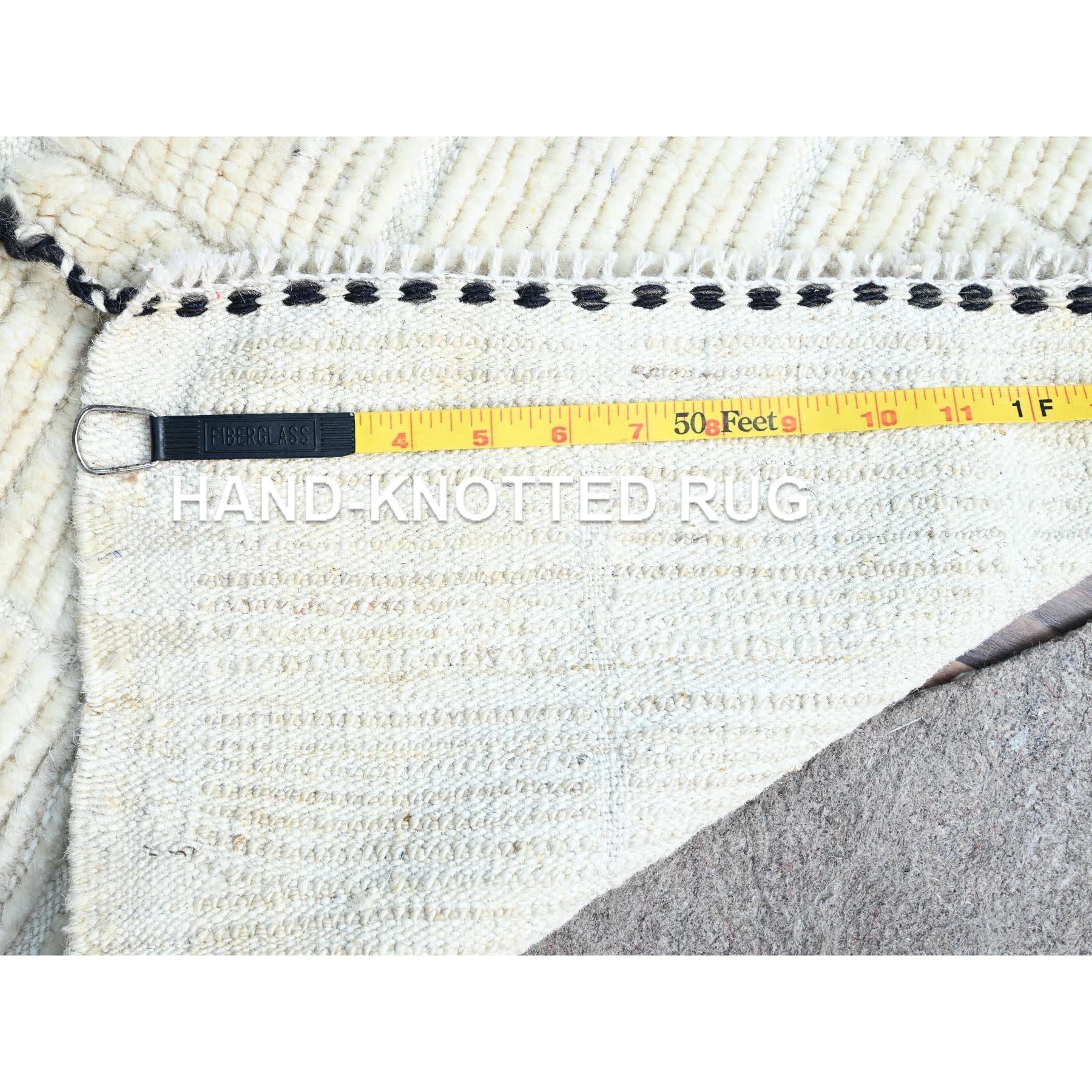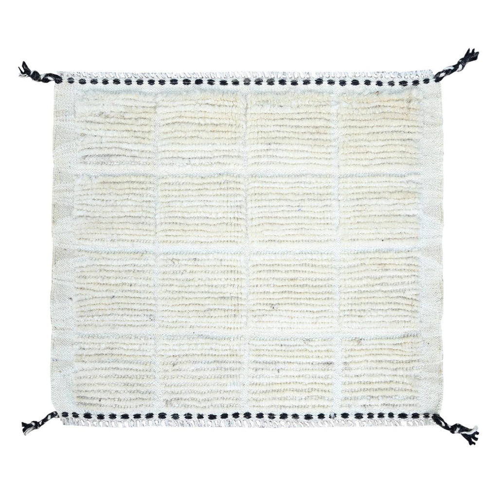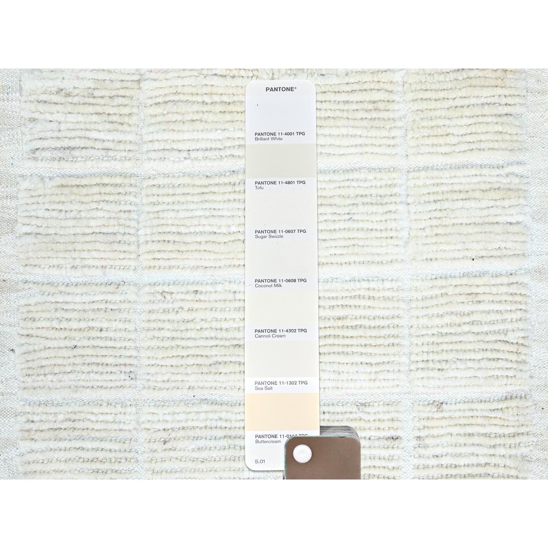 1'8"x2' Bone White, Natural Undyed Wool, Moroccan Weave, Grid Design Sample, Hand Knotted, Oriental Rug FWR1488