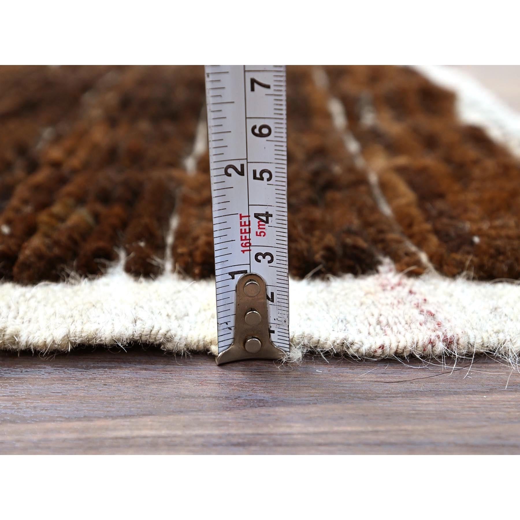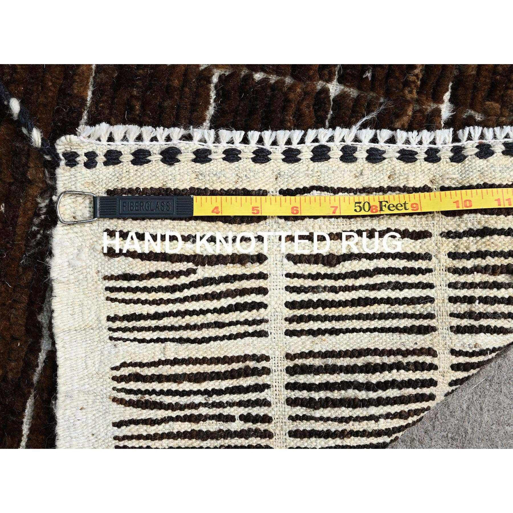 1'8"x2' Chocolate Brown, Natural Undyed Wool, Moroccan Weave, Grid Design Sample, Hand Knotted, Oriental Rug FWR1470