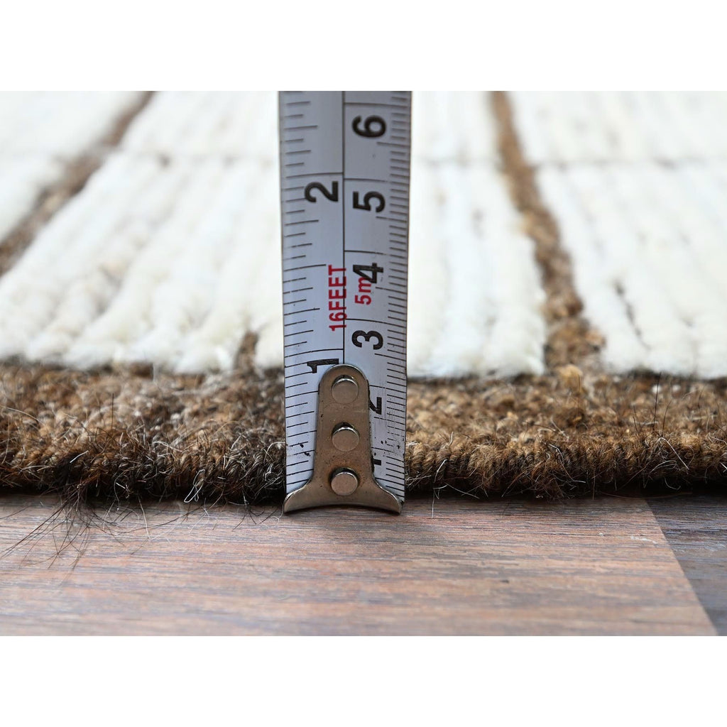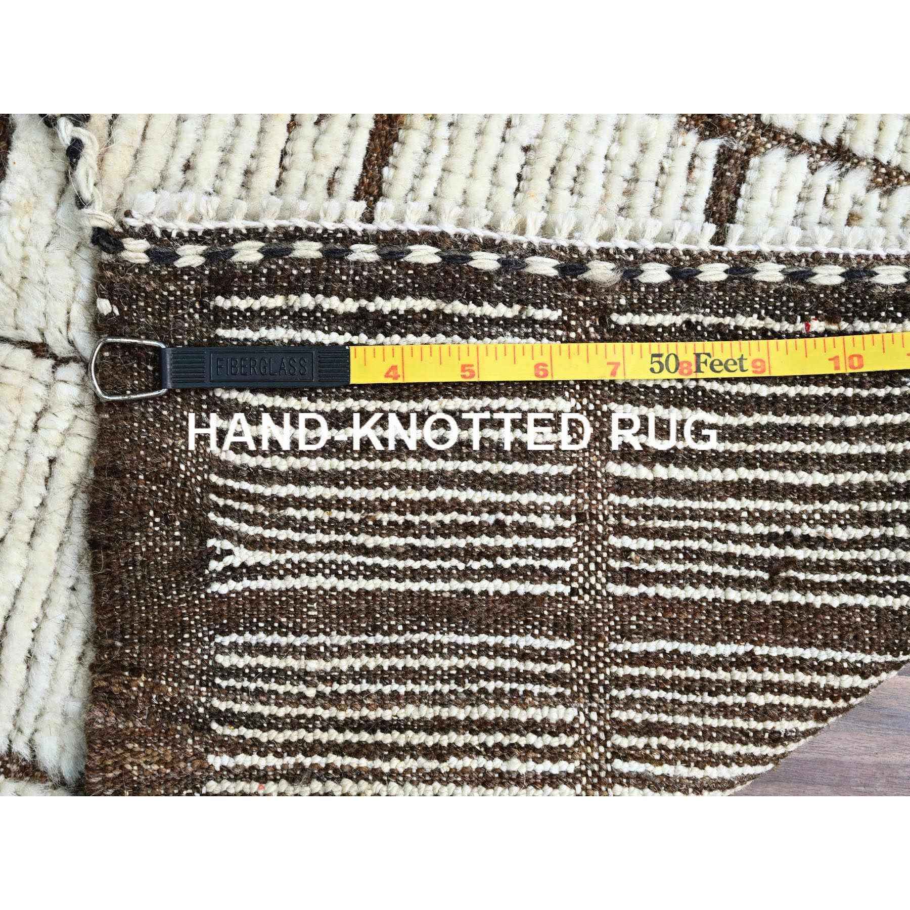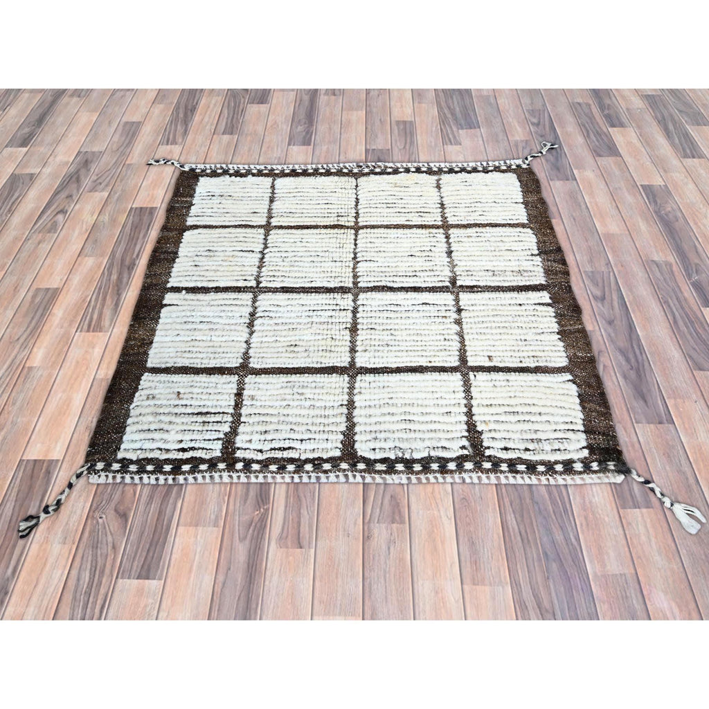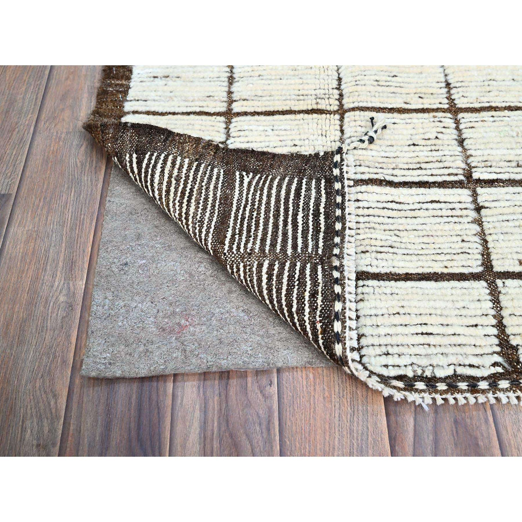 1'8"x2' Daisy White, Natural Undyed Wool, Moroccan Weave, Grid Design Sample, Hand Knotted, Oriental Rug FWR1482