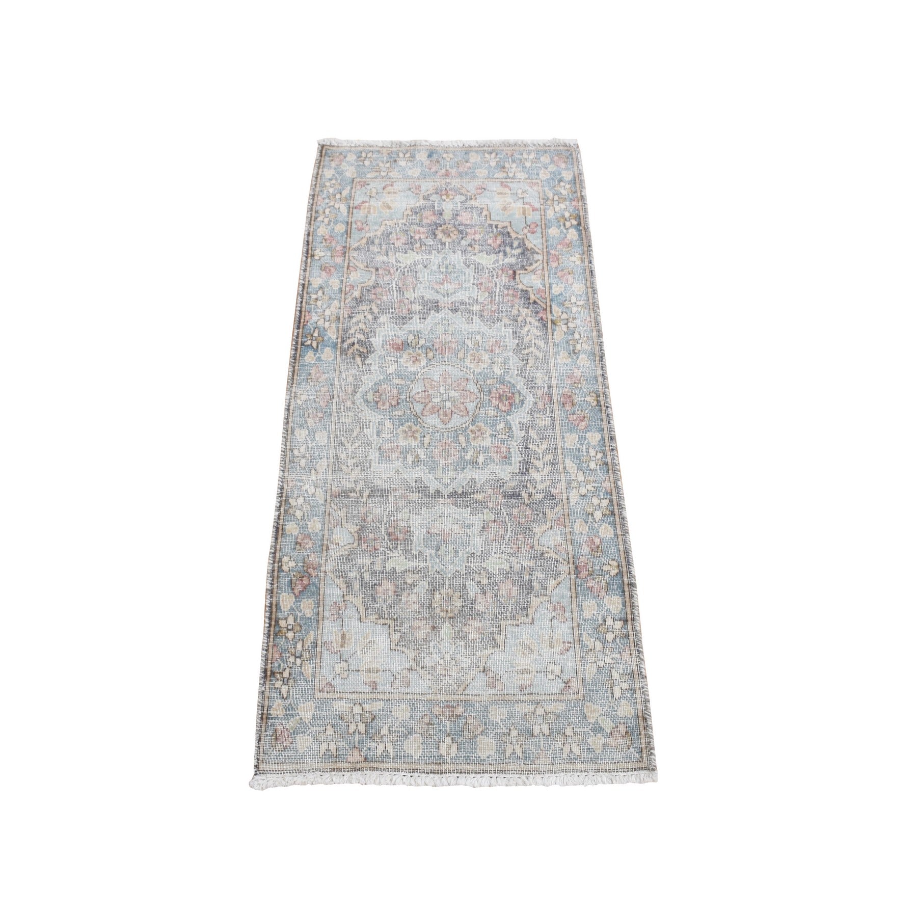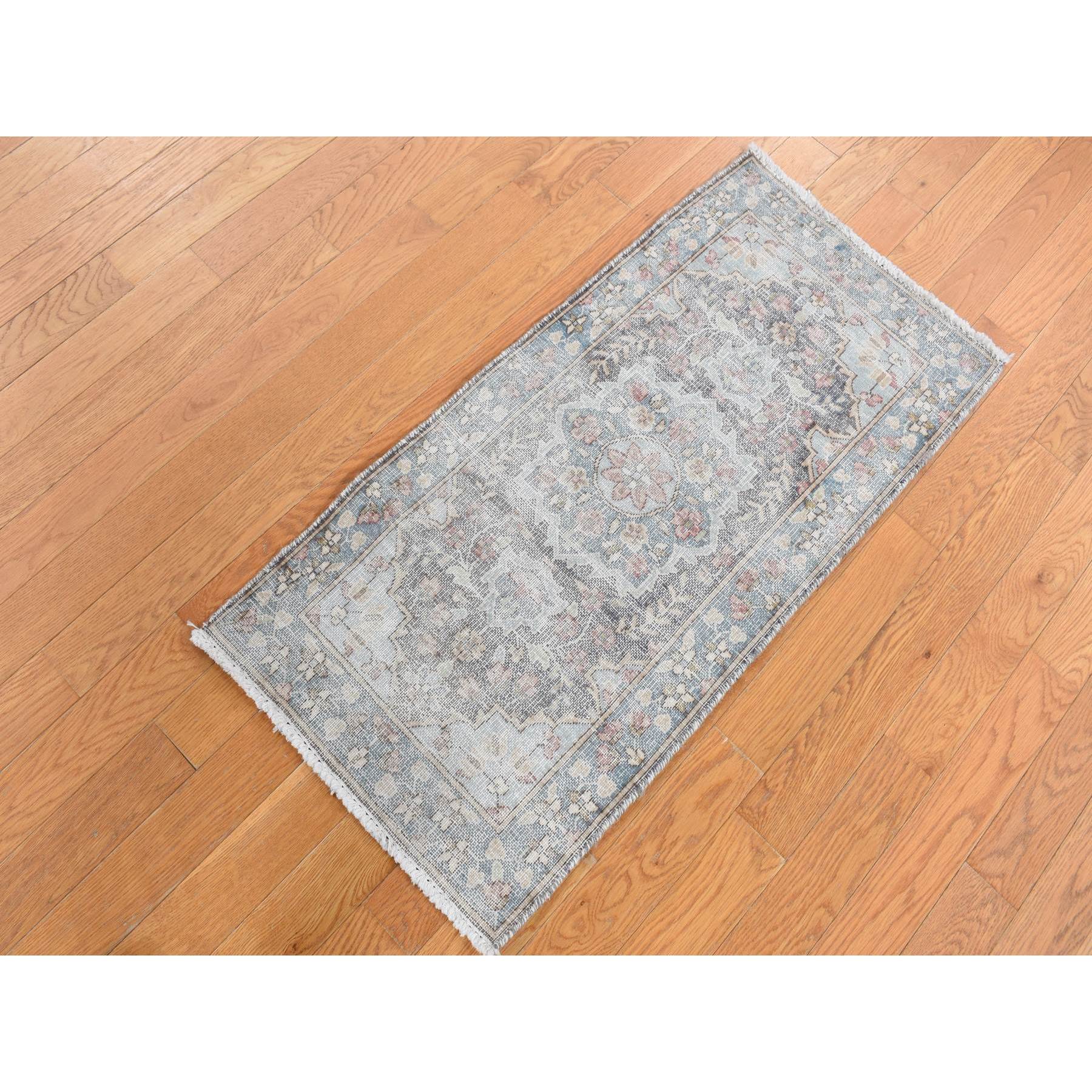 1'8"x3'7" Misty Gray, Pure Wool, Vintage Persian Kerman, Hand Knotted, Mat Oriental Rug FWR526650