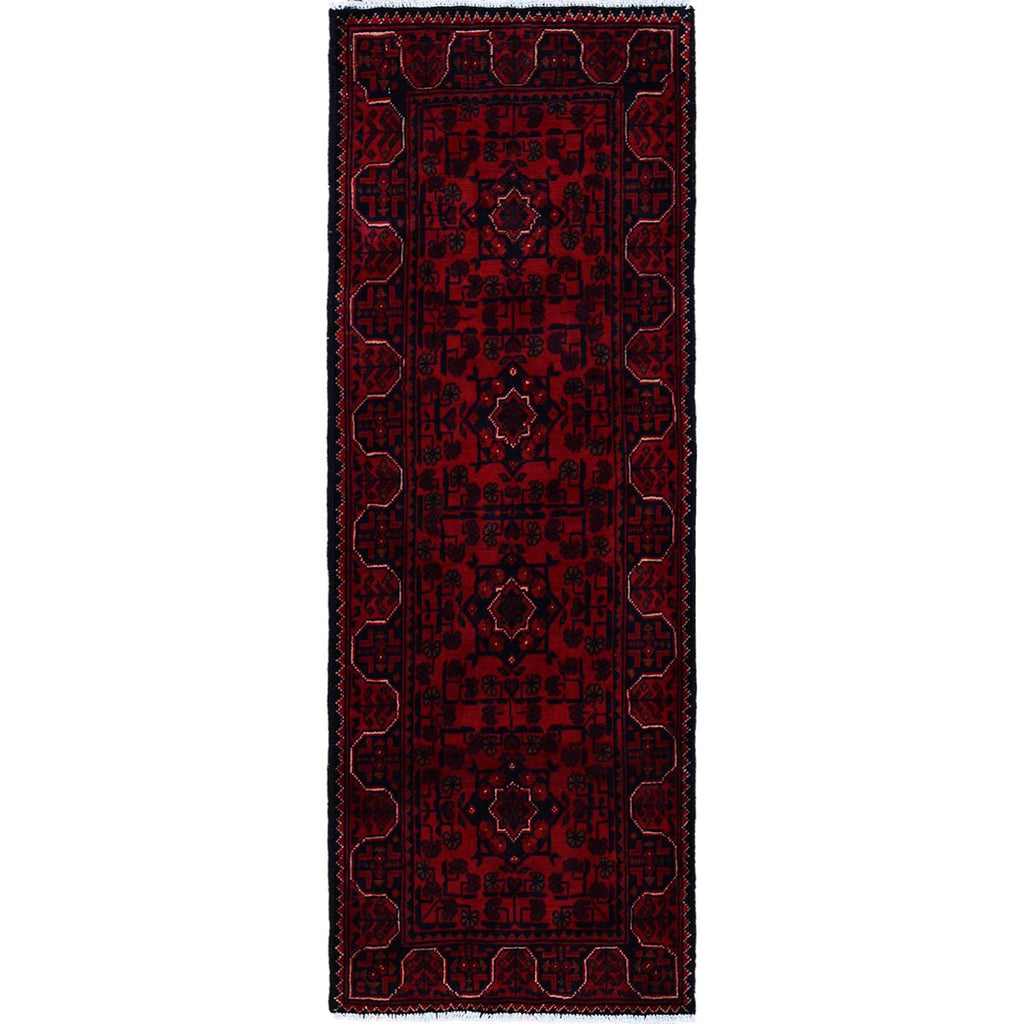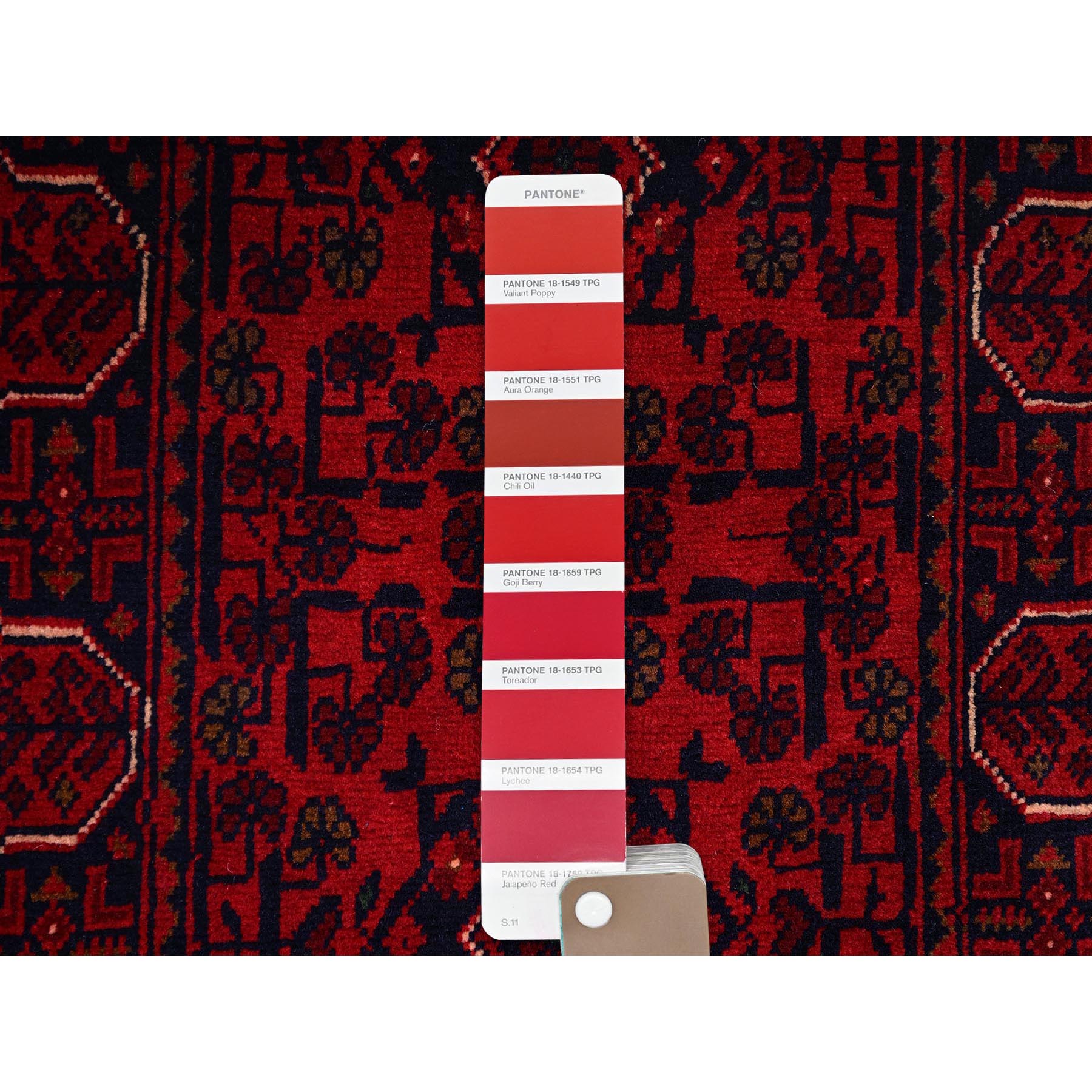 1'8"x4'9" Angels Red, Afghan Khamyab With Geometric Pattern, Hand Knotted, Soft And Shiny Wool, Natural Dyes, Short & Narrow Runner, Oriental Rug FWR4548
