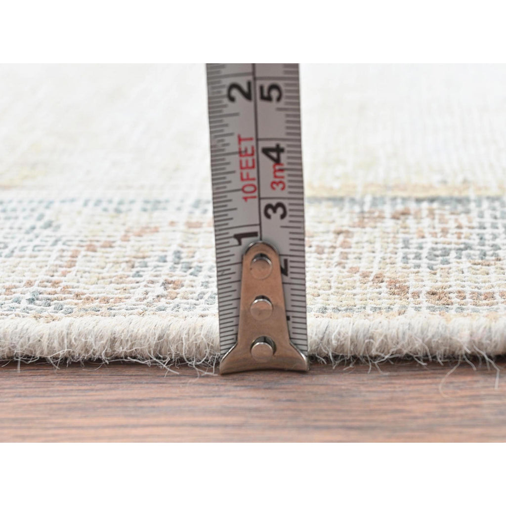 1'9"x3'6" Ivory, Cropped Thin Distressed Look Worn Wool, Hand Knotted Old Persian Kerman Shabby Chic, Oriental Rug FWR491862